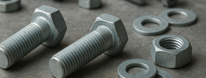 A galvanização é um dos tratamentos mais eficazes para proteger fixadores contra a corrosão. O processo consiste em revestir o aço com uma camada de zinco metálico, que age como uma barreira protetora entre o metal e o ambiente. Mesmo que a camada sofra riscos ou pequenas falhas, o zinco continua protegendo o aço por um mecanismo conhecido como proteção catódica, em que o zinco se sacrifica para preservar o metal base.